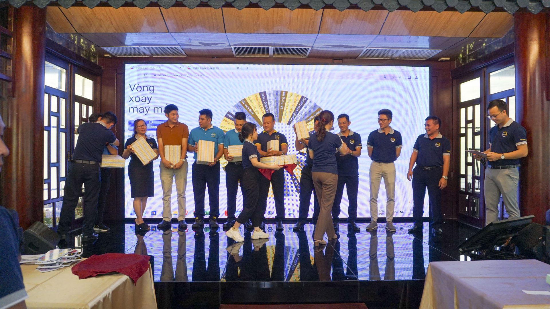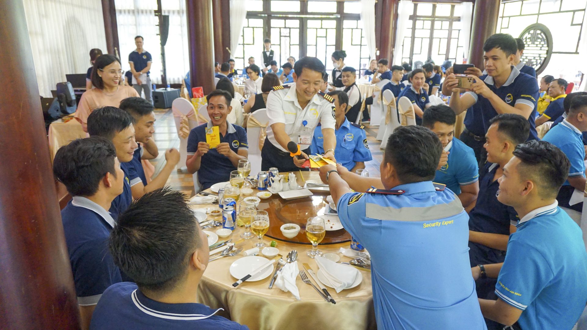 Mở đầu buổi tiệc Ban Lãnh Đạo Kubet đến từng bàn phát lộc đầu năm đến các anh Cán bộ quản lý an ninh.Buổi tiệc đã đem đến sự vui tươi với những món ăn ngon, trò chơi may mắn và vòng quay may mắn.