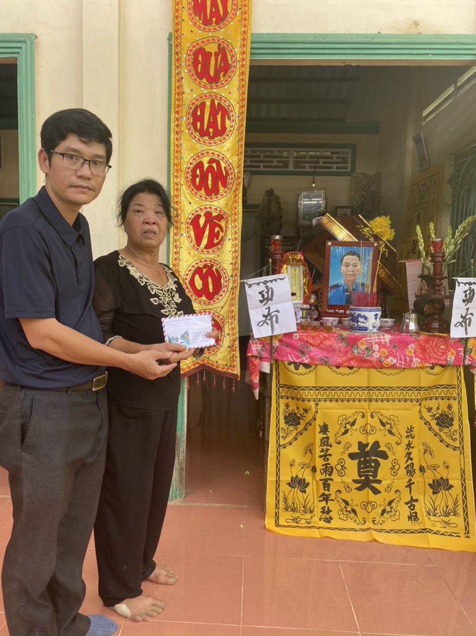 Đối với gia đình, đồng chí không những là người con hiếu thuận chăm sóc mẹ già mà còn là người cha mẫu mực, trụ cột chính nuôi dưỡng 02 đứa con thơ.